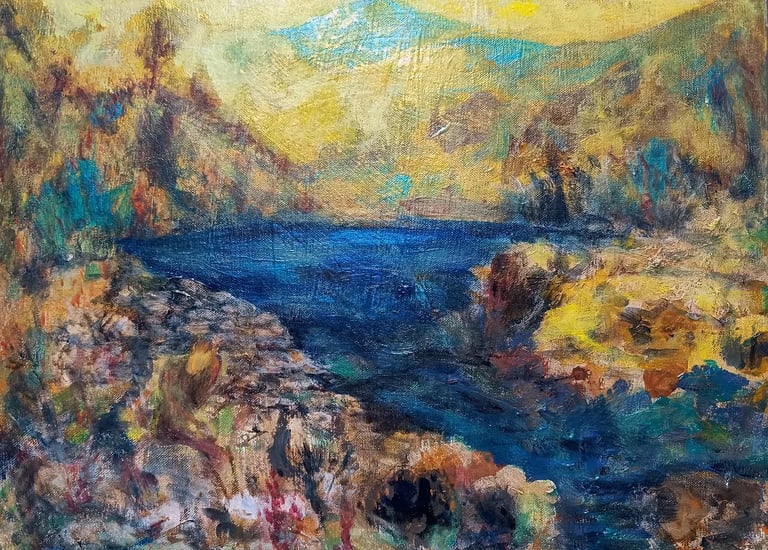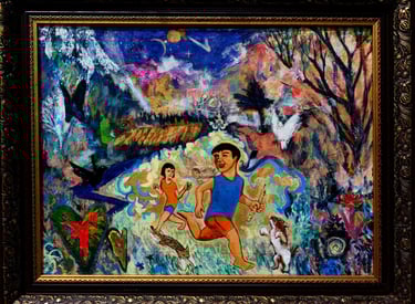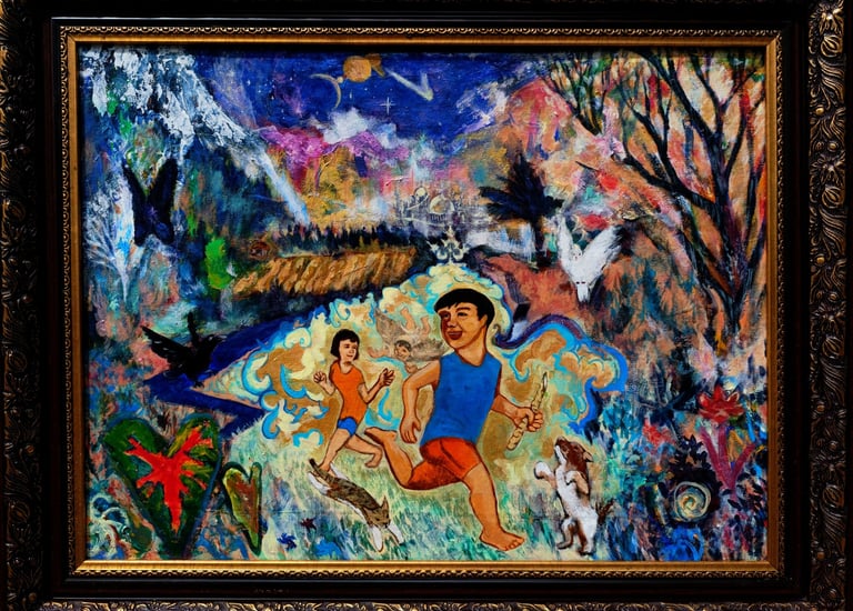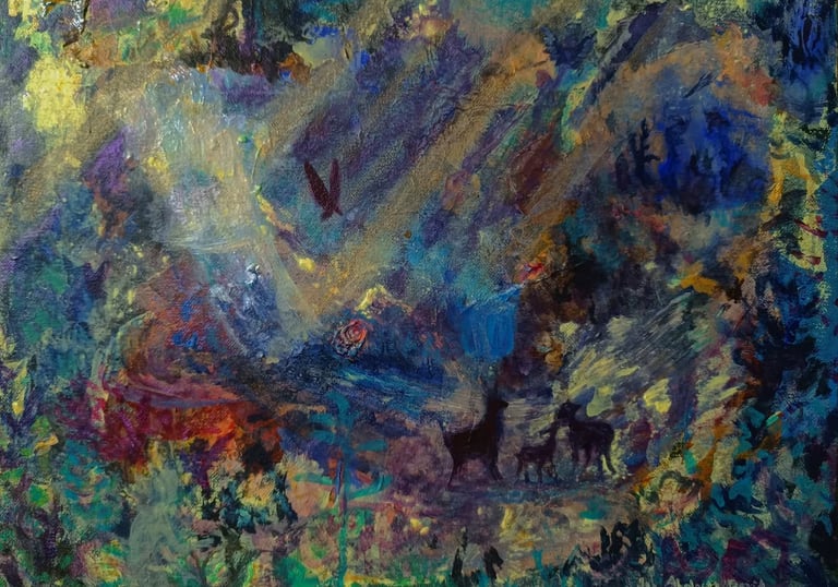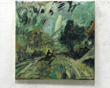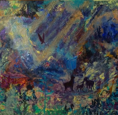 Ever since, I've been interested in Philosophy, which fueled my political practice, having studied Dialectics and phenomenology. I used phenomenology to guide my artistic practice, utilizing the concept of "Spirits" being represented as brushstrokes, which then make up "The World" which is the overall painting. I posit in this framework that the material world is nothing more than an abstract painting, which I represent in a system of spirits being in the world.