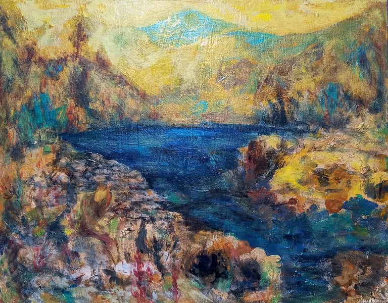 "Dapithapon sa Basudan (Rocky Riverside at Dusk"
